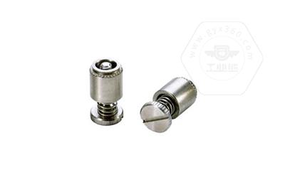 手緊螺釘?shù)膲恒T套具有壓花齒,壓裝于于機箱或薄鈑孔內(注:薄板的鉆孔徑相對應彈簧螺釘?shù)膲糊X徑有一定要求的,形成一個外露的彈簧螺釘,用手擰另一端(即手擰端).因其里面固定有彈簧,螺釘相對于薄板的另一端來回進出。