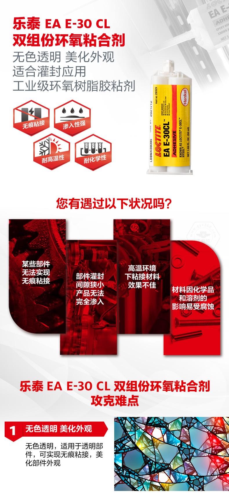 樂泰EA E-30 CL雙組份環(huán)氧粘合劑是一款無色透明的工業(yè)級環(huán)氧樹脂膠粘劑。樂泰EA E-30 CL雙組份環(huán)氧粘合劑適用于透明部件,可實(shí)現(xiàn)無痕粘接,美化外觀。樂泰EA E-30 CL雙組份環(huán)氧粘合劑低粘度、滲入性強(qiáng),能夠有效滲入小間隙并填充縫隙,適合灌封應(yīng)用。樂泰EA E-30 CL雙組份環(huán)氧粘合劑還具備耐高溫性和耐化學(xué)性,可用于玻璃、光纖、陶瓷、金屬和許多硬質(zhì)塑料的粘接。