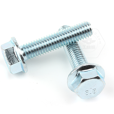 工業(yè)熊碳鋼8.8級藍白鋅六角法蘭面全牙螺栓加大系列平頭帶齒GB5789