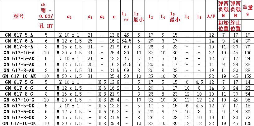 產(chǎn)品型號(hào)為GN617,不銹鋼材質(zhì)型號(hào)為GN 617-NI